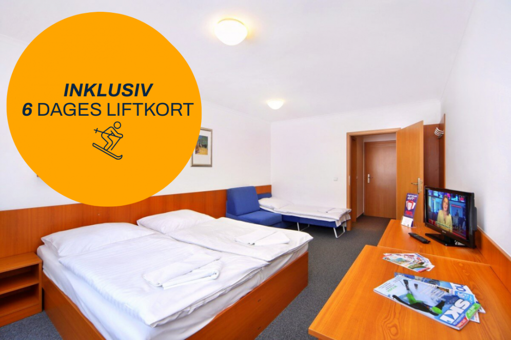 I kører selv til Hotel Aquapark. Ved ankomst om morgenen kan I stille bagagen i receptionen, klæde om og tage direkte på ski, selvom værelset først er klar til check-in fra kl. 14:00. Hotellets personale sørger for, at jeres bagage opbevares sikkert, indtil I kan få adgang til værelset om eftermiddagen. Efter en dag på ski kan I pakke ud, slappe af og nyde en hyggelig middag på hotellet.